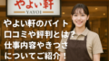 全国にチェーン展開している定食屋「やよい軒」。落ち着いた雰囲気で、学生から主婦層まで幅広い層に人気があります。そんなやよい軒は、アルバイトとしての応募も多く、口コミで「働きやすい」「覚えることが多い」「まかないが楽しみ」といったさまざまな声...