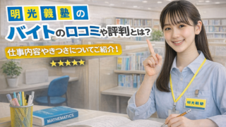 「塾講師のバイトって実際どうなの?」「明光義塾の口コミや評判が知りたい!」と気になっている方も多いのではないでしょうか。明光義塾は全国に教室を展開する個別指導塾として知名度が高く、大学生を中心に人気のアルバイト先です。 この記事では、...